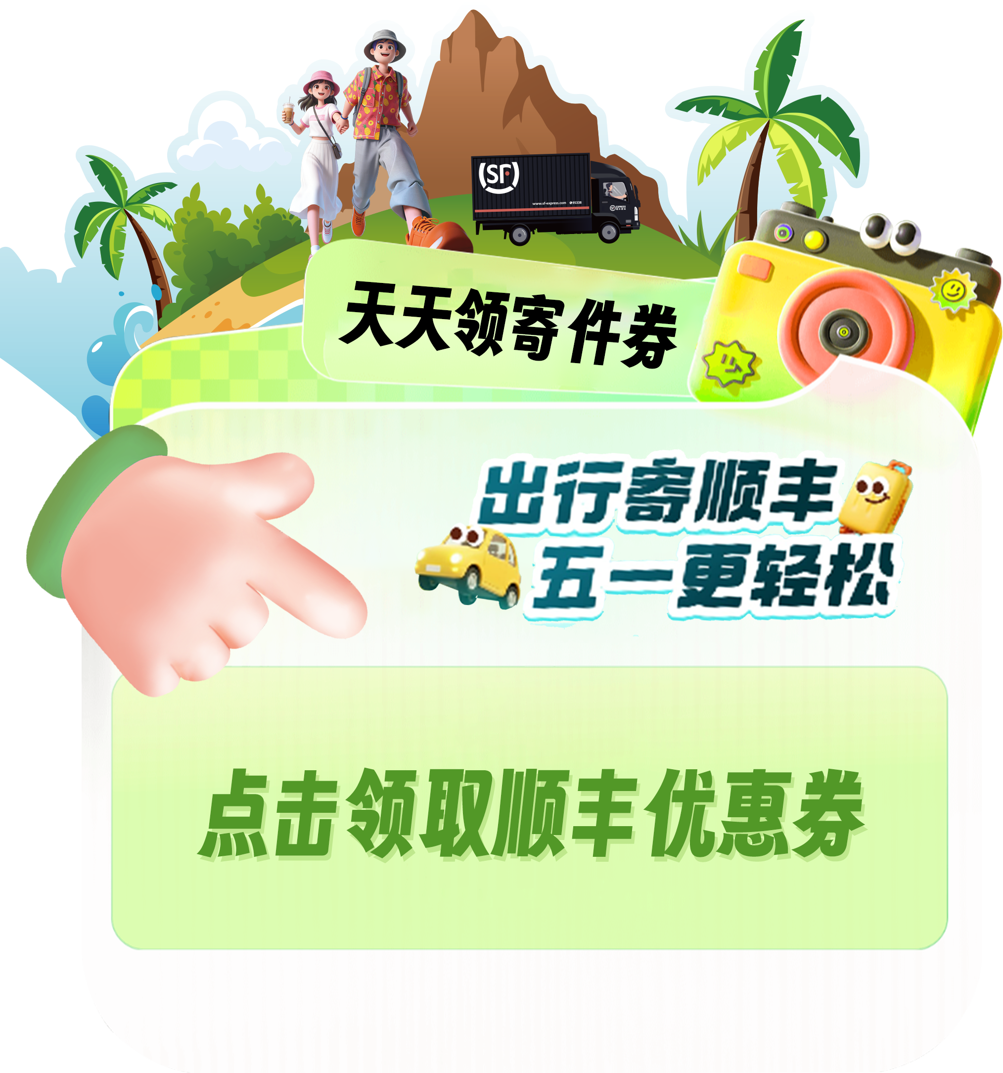 生成海报后点击“好运寄递”,跳转顺丰小程序领取优惠券;完成寄递可直接获得品牌特色进出周边礼“满载明信片 + 城市特色行李牌”。